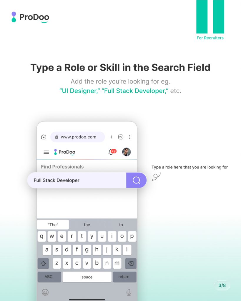 When you land on Prodoo’s recruiter dashboard, the first thing you’ll see is the search field.