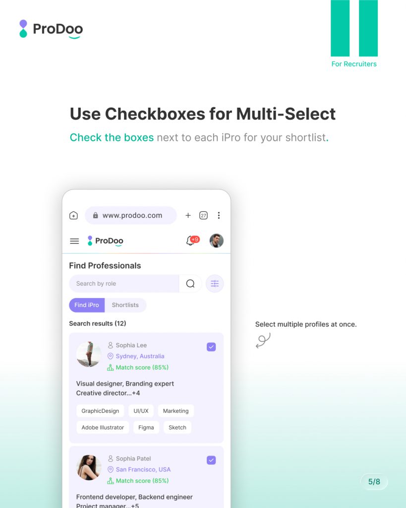 Instead of shortlisting profiles one by one, Prodoo lets you select multiple iPros at once.