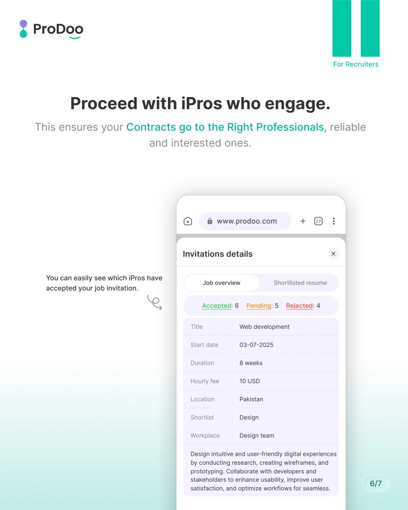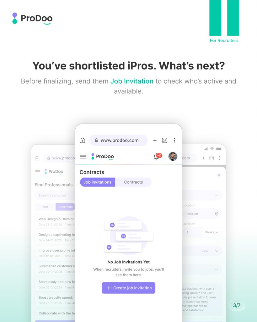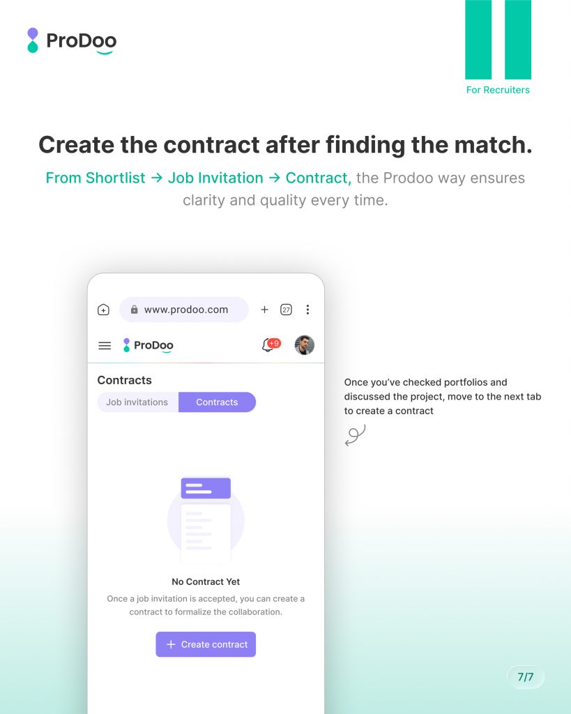 Sending a job invitation before creating a contract is a smarter way to hire on Prodoo.