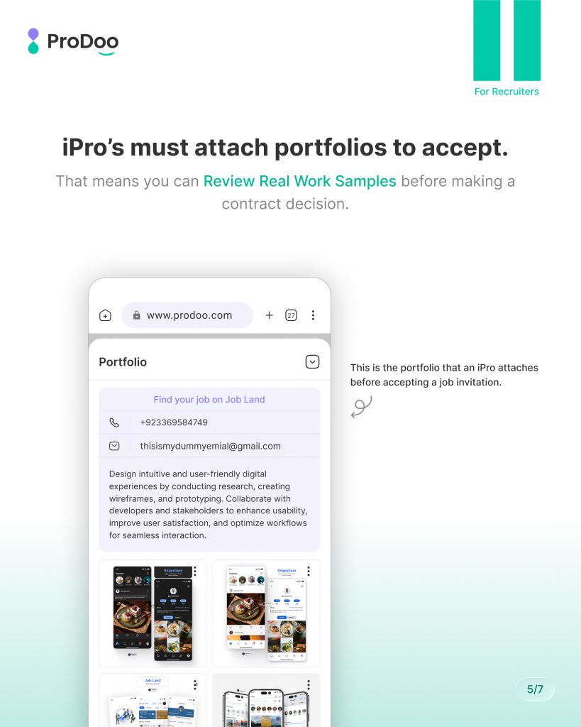 Before accepting a job invitation, iPros are required to attach their portfolio.
